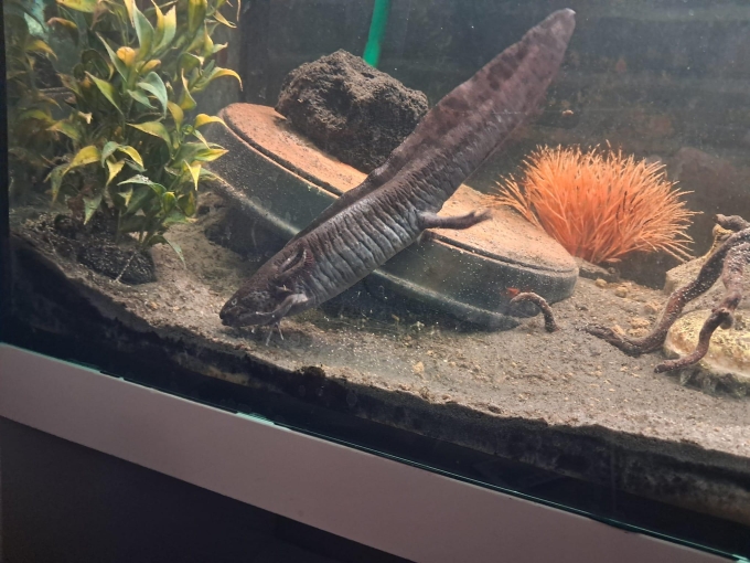 Verkaufen ein 3Jahre altes Axolotl. Wenn Interesse besteht gerne auch mit Aquarium , Pumpe und Deko . Er frisst Tubifex, die kleinen Shrimps und Lebendfutter. Er ist sehr zahm und lässt sich streicheln. Leider ist unser zweiter verstorben da er schon älter war. Er ist aber sehr friedlich zu anderen Artgenossen und würde sich sehr freuen mit anderen zusammen in sein neues Zuhause zu kommen.
