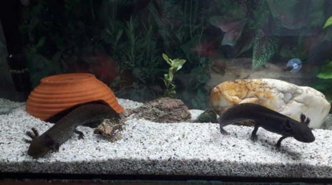 Unser Axolotlpärchen suchen ein neues Zuhause. Mein Sohn kann aus gesundheitlichen Gründen die beiden nicht mehr in seinem Zimmer haben, daher suchen sie ein neues Zuhause. Sie ziehen mit Aquarium, Pumpe und Zubehör aus.